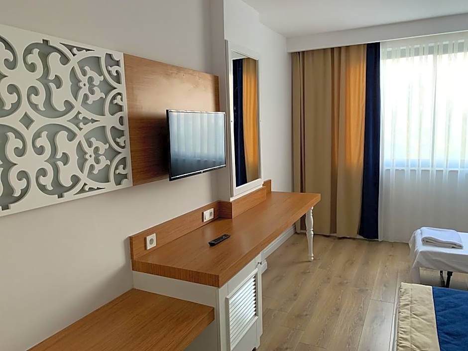 Double Deluxe for Single Use is 269 square feet and includes a king-size bed 150-183 width plus a sofa bed plus balcony, satellite tv , and slippers and is Wheelchair-accessible with a Disability-friendly bathroom.